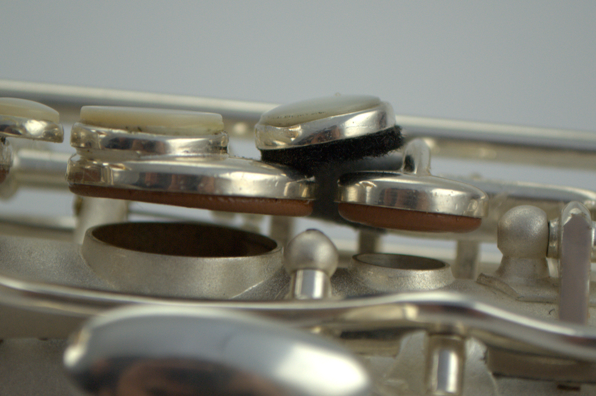 For instance, every instrument has a system of pad cups, hinge tubes, and levers. This pad system is usually straight forward. In the bottom stack for example, there are three key feet, F, E, and D, and the top of each foot contacts the F# back bar and the bottom contacts the body. In order for these four keys to function together, the timing must be set between the body, feet, and backbar. The space between the foot and body of each key must be the consistent and the space between the top of the foot and the backbar must be consistent as well. Each pad cup should be oriented to the tone hole so that when the pad reaches a level state, the pad contacts the entire surface of the tone hole simultaneously.